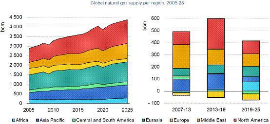 亞太地區(qū)天然氣產(chǎn)量將從2019年的6370億立方米增加到2025年的6760億立方米。