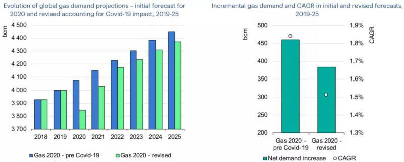 IEA預(yù)計(jì),2021年全球天然氣需求將逐步復(fù)蘇,但疫情的影響是長(zhǎng)期的,天然氣需求增長(zhǎng)受各種不確定因素影響。到2025年,全球天然氣需求預(yù)計(jì)每年僅增長(zhǎng)1.5%,低于IEA此前1.8%的預(yù)期。疫情的影響將導(dǎo)致到2025年的需求損失達(dá)750億立方米/年,這與2019年全球需求的年增長(zhǎng)相同。