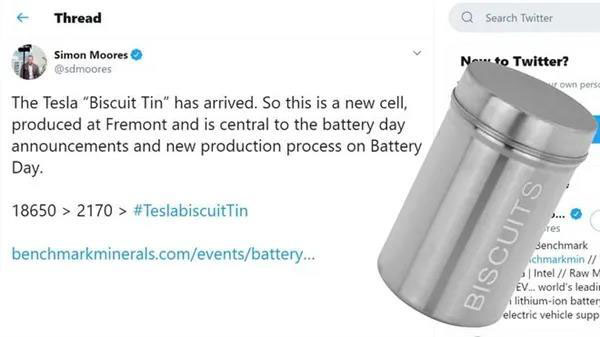 9月22日特斯拉電池日的越來(lái)越近,網(wǎng)絡(luò)上對(duì)于特斯拉電池日要發(fā)布相關(guān)的新技術(shù)的關(guān)注度也與日俱增。尤其是特斯拉在電池如將要發(fā)布的新電池。近日,海外有網(wǎng)友在社交媒體上,首次曝光了特斯拉新型電池的圖片。這款電池可能會(huì)命名為“餅干盒(Biscuit Tin)”。從中可知,特斯拉新電池單體,為圓形結(jié)構(gòu)。并且可以將電池成本降至100美元/千瓦時(shí)(約合人民幣676元/度)。同時(shí),新電池的能量密度也會(huì)大大增加。