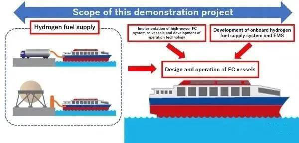 該項目將于2020年9月啟動,是日本首次嘗試開發(fā)商用燃料電池船舶,并進行了涉及氫燃料供應(yīng)的示范操作。使用氫燃料電池作為動力源,將有可能完全消除航行過程中的溫室氣體(GHG)排放。