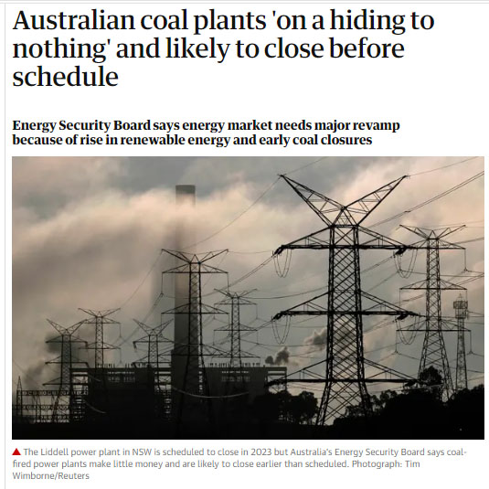 澳大利亞能源安全委員會表示,由于大量廉價的可再生能源進入電網(wǎng),澳大利亞老舊的燃煤發(fā)電廠難以盈利,可能在需要提前退役。