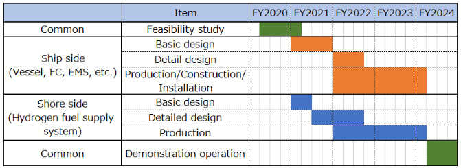 圖2 日本燃料電池船舶商業(yè)化項(xiàng)目時(shí)間表