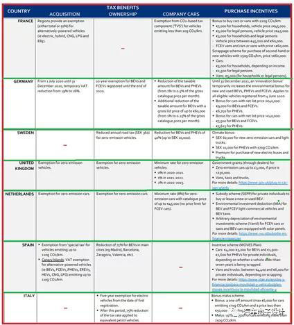 ACEA做了政策層面的梳理,總體來看,主要的國家在購置補貼、公司用車、稅收和臨時性措施方面都很到位,這些政策某種程度上由于分散到各個不同的國家,財政負擔主要在德國、法國、英國、意大利和西班牙這五個整體基數(shù)比較大的國家。其他的國家基數(shù)有限,這么補貼有點類似我們在北京、上海、廣州這樣來補貼,整個維度還是和我們有點差異的。
