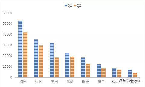 圖4 主要國家Q1和Q2的新能源汽車的銷量對比