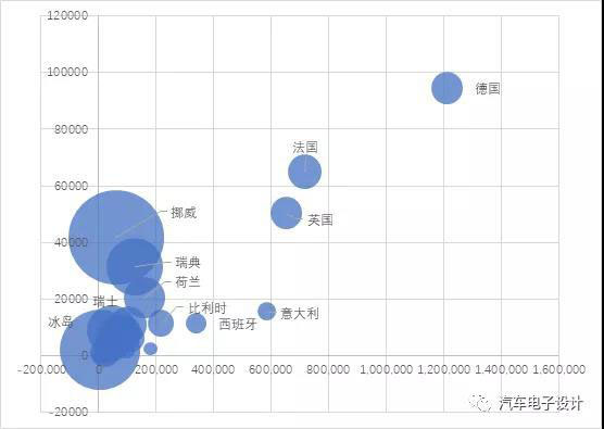 圖3 2020年上半年歐洲國家新能源汽車的銷量氣泡圖