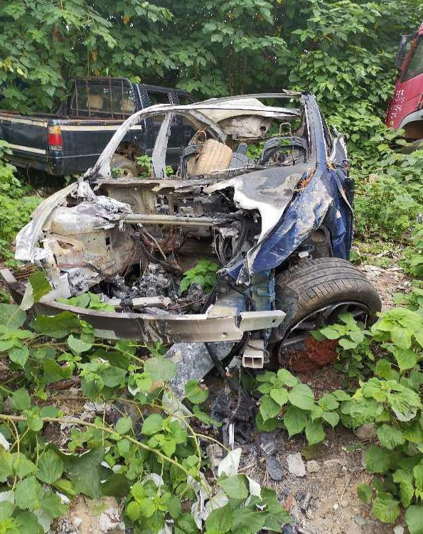據(jù)陳宇介紹,撞上土堆后,車輛發(fā)生了多次翻滾,開始冒煙?!胺瓭L后,車輛玻璃都碎了,我就從前擋風(fēng)玻璃窗口爬了出來,迅速逃離。大約十分鐘后,車輛開始起火?!标愑顚τ浾哒f,他當(dāng)時(shí)非常清醒,逃出后腹部劇痛,就借圍觀人員的電話先撥打了120,后撥打了119,最后撥打的是交警報(bào)警電話。