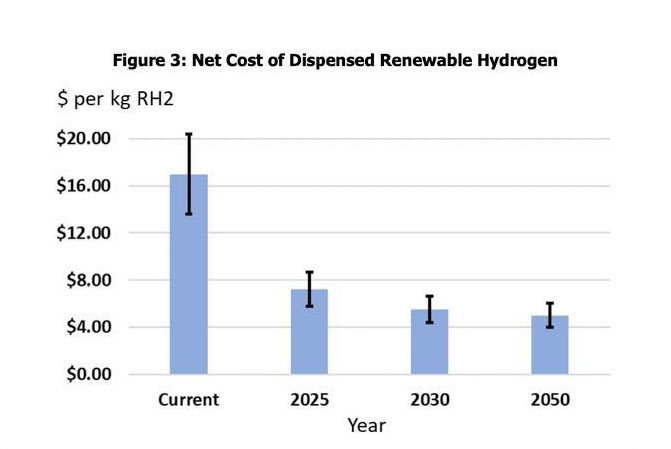 為了真正解決制約氫燃料車的普及問題,加州政府下屬的加州能源委員會(CEC)本月正式發(fā)布了《加州可再生制氫工廠部署與建造路線圖》。按照CEC的部署規(guī)劃,五年之后加州氫燃料車加氫將像加汽油一樣便宜。這份報告是交由加州大學爾灣分校(UC Irvine)的先進電力與能源項目撰寫的。