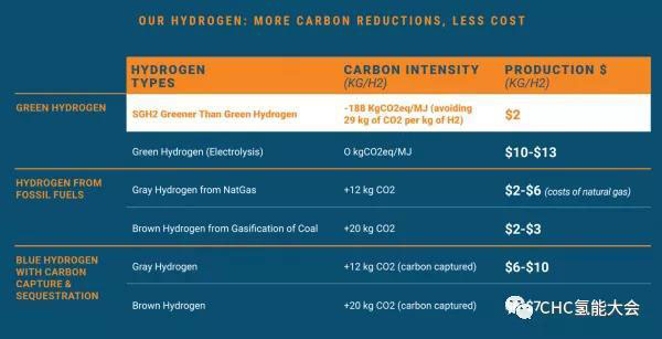 SGH2綠色氫具有低排放和低成本(來自SGH2官網)