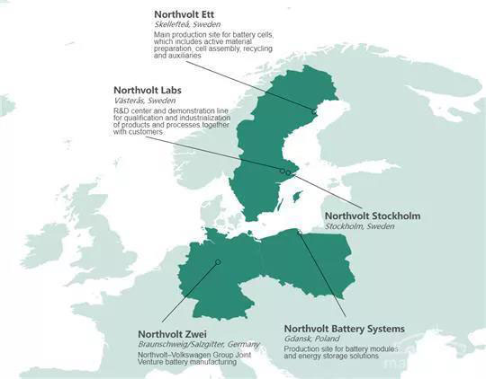 歐洲本土企業(yè)中,Northvolt位于瑞典的超級工廠,已經(jīng)動工,預計2021年產(chǎn)能將達到16GWh,之后達到32GWh。