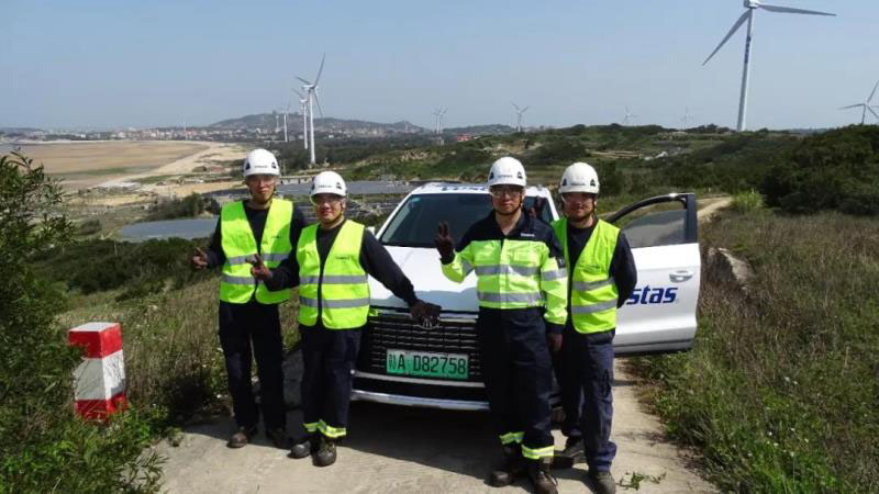 每一天,當(dāng)辛志濤開車前往福州市石城風(fēng)場(chǎng),為那里的27臺(tái)V80-2.0 MW風(fēng)機(jī)做維護(hù)檢測(cè)時(shí),他知道他正在以更可持續(xù)的方式幫助我們實(shí)現(xiàn)能源轉(zhuǎn)型。因?yàn)樗F(xiàn)在開的是一輛純電動(dòng)車。