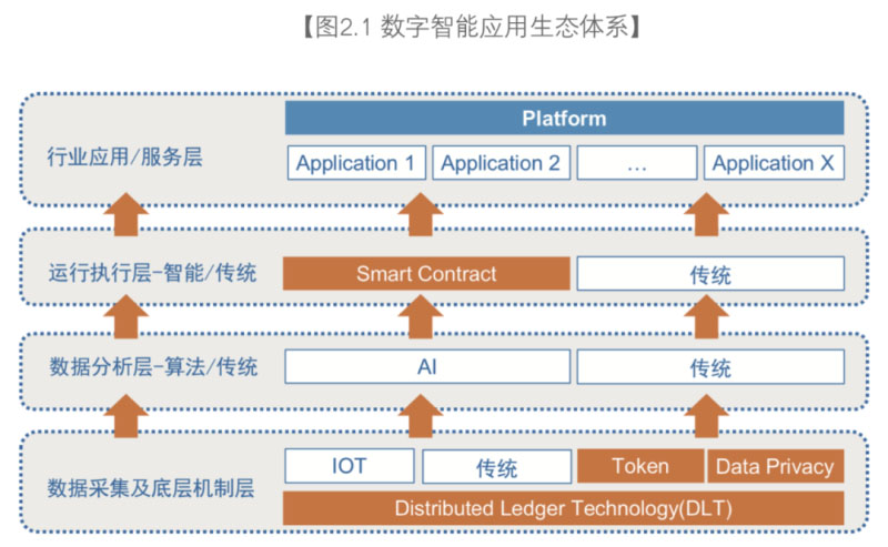 該體系采用分層結(jié)構(gòu),主要包括:數(shù)據(jù)采集及底層機(jī)制層、數(shù)據(jù)分析層(算法/傳統(tǒng))、運(yùn)行執(zhí)行層(智能/傳統(tǒng))、行業(yè)應(yīng)用/服務(wù)層(生態(tài))。