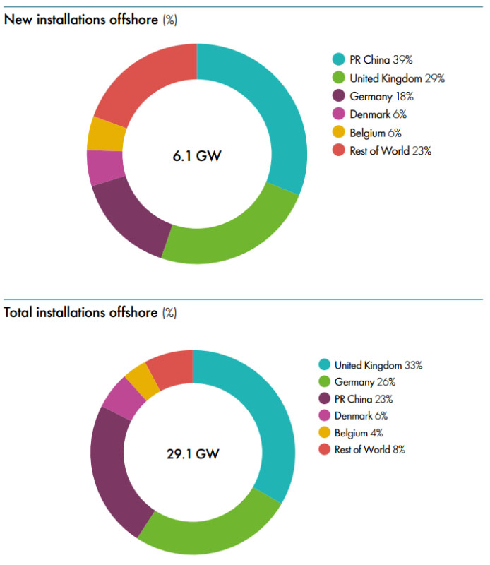 海上風(fēng)電在全球風(fēng)電中正發(fā)揮著越來越重要的作用,2019年的裝機(jī)容量達(dá)到創(chuàng)紀(jì)錄的6.1GW,占總新裝機(jī)容量的10%。