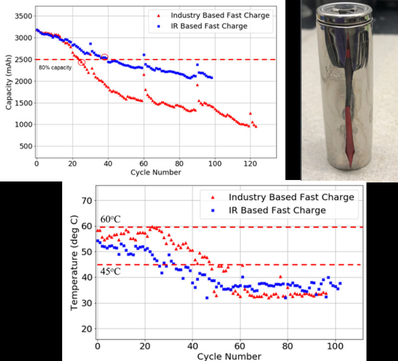 電氣和計(jì)算機(jī)工程系教授Mihri Ozkan與Marlan and Rosemary Bourns工程學(xué)院機(jī)械工程系教授Cengiz Ozkan領(lǐng)導(dǎo)了一個(gè)小組,采用高速公路沿路安裝的快速充電樁為特斯拉汽車(chē)中的松下NCR 18650B圓柱形鋰離子電池充電。