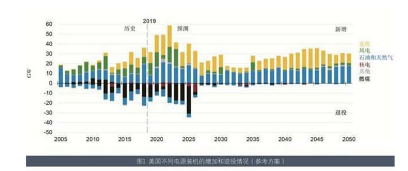 此前,EIA發(fā)布了《2020年度美國(guó)能源展望》報(bào)告,預(yù)測(cè)2020-2050年不同電源裝機(jī)的增加和退役情況。