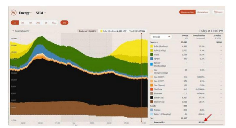 在上周西方復(fù)活節(jié)當(dāng)天,澳大利亞可再生能源達(dá)到了電網(wǎng)需求的創(chuàng)紀(jì)錄水平,當(dāng)時(shí)屋頂太陽能,大規(guī)模風(fēng)能以及太陽能和水力發(fā)電的總產(chǎn)量達(dá)到凈負(fù)荷的50.4%。