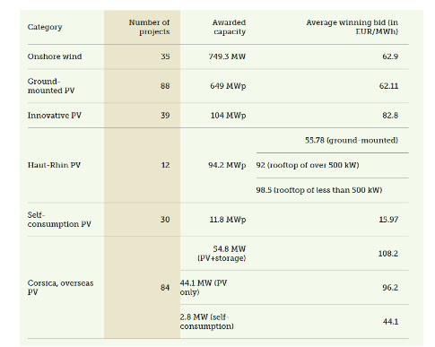 同時,法國政府還批準(zhǔn)了88個地面太陽能項(xiàng)目,約649 MWp的容量,平均報價為每兆瓦時62.11歐元;39個創(chuàng)新太陽能項(xiàng)目增加了104 MWp容量,上萊茵地區(qū)12個項(xiàng)目增加94.2 MWp裝機(jī)容量。此外,11.8 MWp自耗式太陽能裝置以及在法屬海外地區(qū)和科西嘉島的101.7 MW光伏計劃也已入選。