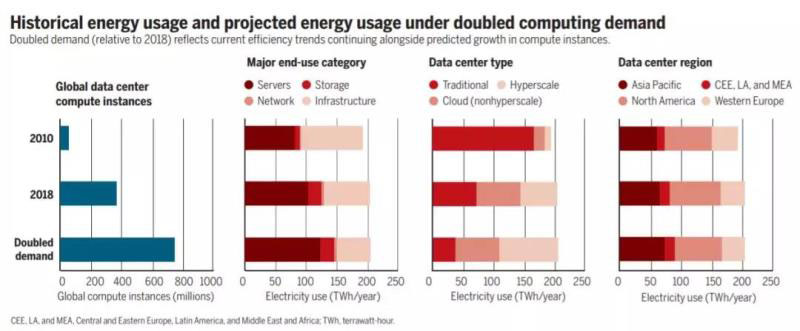 全球數(shù)據(jù)中心能耗趨勢(shì)(來源:Science)