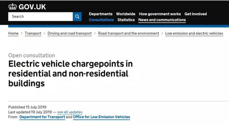 英國(guó)政府(2019年7月15日起)開(kāi)始就修訂建筑法規(guī)進(jìn)行公眾咨詢(xún),要求所有帶有專(zhuān)用停車(chē)位的所有新建房屋(民用或商用)以及現(xiàn)有的非居民住宅建筑配備電動(dòng)充電設(shè)施來(lái)支持和鼓勵(lì)英國(guó)電動(dòng)汽車(chē)的日益增長(zhǎng)。英國(guó)將成為世界上第一個(gè)實(shí)施類(lèi)似法規(guī)的國(guó)家,確保英國(guó)擁有世界上最好的電動(dòng)汽車(chē)基礎(chǔ)設(shè)施網(wǎng)絡(luò)。