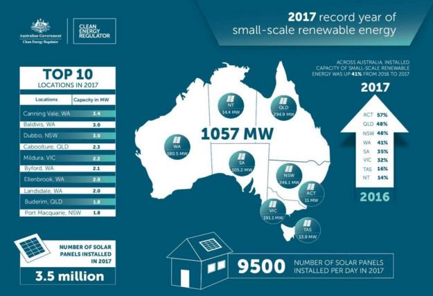中國儲能網(wǎng)訊:澳大利亞清潔能源監(jiān)管機(jī)構(gòu)本周公布的數(shù)據(jù)顯示,迄今為止,小型屋頂太陽能光伏裝機(jī)容量已經(jīng)達(dá)到1057兆瓦,根據(jù)國家小型可再生能源計(jì)劃(Small-scale Renewable Energy Scheme)下注冊的數(shù)據(jù)顯示,預(yù)計(jì)這個(gè)數(shù)據(jù)將增至1070兆瓦以上。
