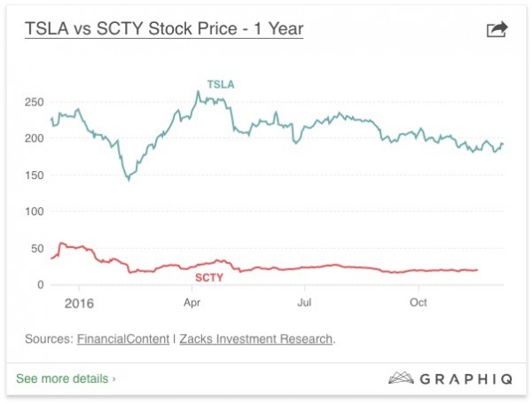 特斯拉和SolarCity的股價(jià)走勢(shì)對(duì)比