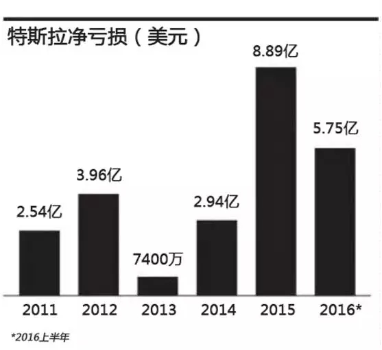 然而,糟糕的是,特斯拉公司的資金也談不上穩(wěn)定。特斯拉在過去五年損失25億美元,比SolarCity還多。自2013年,特斯拉就沒有季度利潤(rùn)了。今年夏天,馬斯克懇求公司員工盡量削減成本。因?yàn)殡S著Model 3的完成和內(nèi)華達(dá)的超級(jí)工廠Gigafactory的建設(shè),特斯拉即將開啟新一輪燒錢模式。