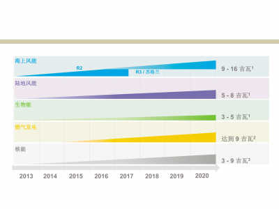 1英國可再生能源發(fā)展路線圖,2012年12月。根據(jù)未來能源需求,成本軌跡、工業(yè)領(lǐng)域所能達到的部署水平,每項可再生能源發(fā)電技術(shù)現(xiàn)有發(fā)電能力較小。