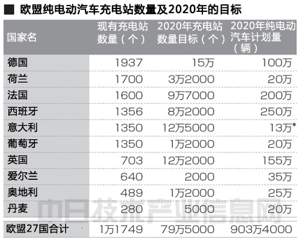 根據(jù)提案來看,歐盟目前的純電動汽車充電站總量為11749個,而戰(zhàn)略要求在2020年之前增加到79.5萬個。其中德國的目標(biāo)最高,為15萬個。歐盟委員會估算,按照提案進(jìn)行建設(shè),歐盟整體純電動汽車充電站開發(fā)費(fèi)用約為80億歐元。