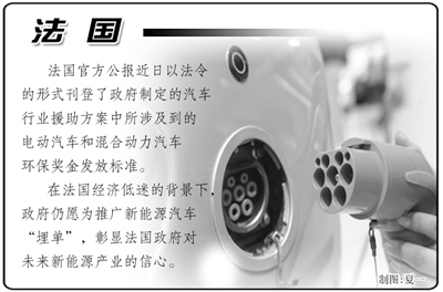 就在法國徘徊在新能源發(fā)展何去何從的十字街口時,新能源汽車或許是法國新能源領域的惟一亮點。據法國媒體報道,法國官方公報近日以法令形式刊登了政府制定的汽車行業(yè)援助方案中電動汽車和混合動力汽車環(huán)保獎金發(fā)放標準。在法國經濟低迷的背景下,政府仍愿為推廣新能源汽車“埋單”,彰顯法國政府對未來新能源產業(yè)的信心。