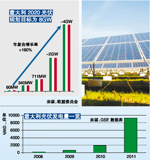 2009年,對電力需求不斷增長的意大利而言是一個轉(zhuǎn)折年,由于陷入經(jīng)濟衰退,這一年意大利電力消費需求突然下降,在此之后,需求回暖的跡象也不甚明顯。有人推斷,經(jīng)濟衰退并非導(dǎo)致電力市場規(guī)??s小的唯一因素,清潔電力,尤其是光伏發(fā)展也是促因之一。