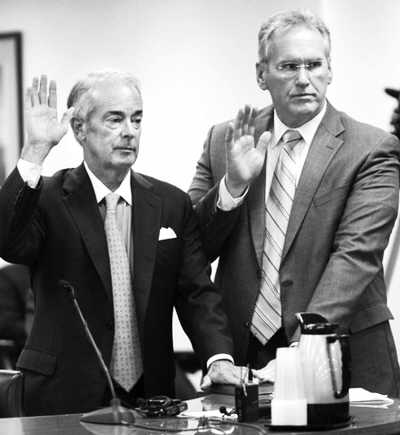中國儲能網(wǎng)訊:去年9月,羅杰斯(左)和約翰遜一同出席了北卡羅來納州公用事業(yè)委員會就收購案舉行的聽證會