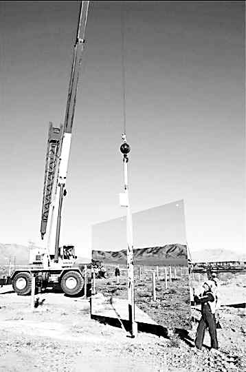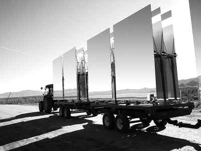 一旦它們完工,定日鏡就會(huì)被拖出來(lái),拖到凹面鏡場(chǎng)地,這要用拖拉機(jī)。 |