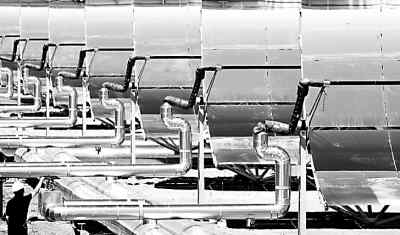布萊斯太陽(yáng)能發(fā)電站占地約2800公頃,建在荒漠土地上。它通過(guò)龐大的凹面鏡陣將太陽(yáng)光轉(zhuǎn)變成熱能加熱蒸汽,驅(qū)動(dòng)渦輪機(jī)發(fā)電。這一項(xiàng)目將分兩期建設(shè),每期工程裝機(jī)容量均為50萬(wàn)千瓦,全部建成后,其產(chǎn)生的電能足以滿足75萬(wàn)個(gè)家庭使用。
