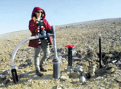 | 當(dāng)?shù)毓ぷ魅藛T展示哥倫比亞市的垃圾填埋循環(huán)系統(tǒng)。 |
