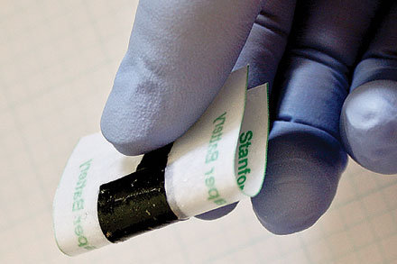 這是斯坦福大學(xué)一個(gè)材料科學(xué)家制造的,薄膜碳納米管涂在另一張表層含有金屬的鋰化合物 納米管。這些很薄的雙層薄膜放在普通紙張的兩面,紙張既是電池的支撐結(jié)構(gòu),同時(shí)也起到分離電極的作用。鋰作為電極,而碳納米管層則是電流集合管。