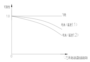 飛輪儲能作為物理(或機械)的儲能手段,在安全性和可靠性方面都比電池更具優(yōu)勢。經研究發(fā)現(xiàn),飛輪儲能不隨時間窗口而退化,也不受外界環(huán)境的影響。因此,飛輪儲能的可靠性能夠得到保證(圖4)。此外,飛輪儲能作為一種功率性器件,在同樣大小的放電功率下,存儲的能量顯著地低于電池,其失效后果也比電池要小得多(圖5)。