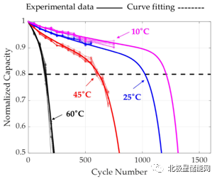 圖3 電池的容量與溫度和循環(huán)次數(shù)的關系