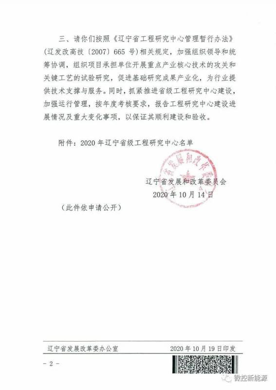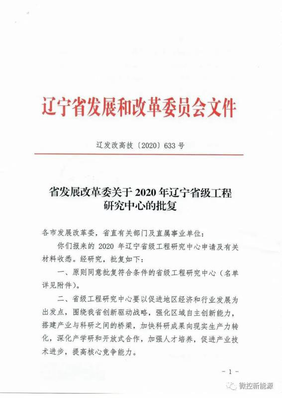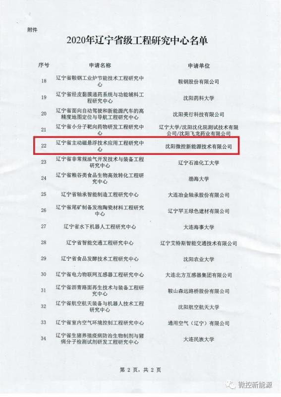 中國儲能網(wǎng)訊:近日,遼寧省發(fā)展和改革委會發(fā)布《省發(fā)展改革委關(guān)于2020年遼寧省級工程研究中心的批復(fù)》(遼發(fā)改高技【2020】633號),沈陽微控新能源技術(shù)有限公司申報的遼寧省主動磁懸浮技術(shù)應(yīng)用工程研究中心成功獲批!