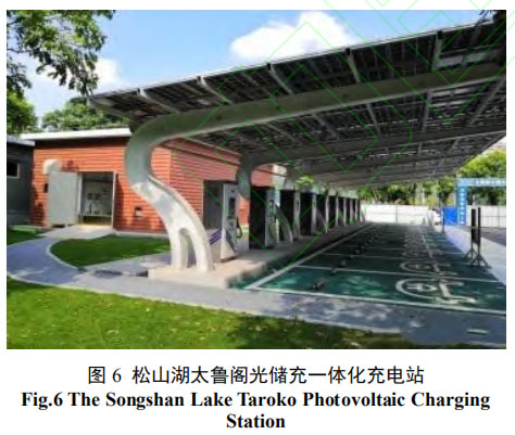 我國國內(nèi)電動(dòng)汽車充電行業(yè)在近幾年也得到了快速發(fā)展。圖 6 為松山湖太魯閣光儲(chǔ)充一體化充電站,該充電站通過核心系統(tǒng)“光儲(chǔ)充一體式能源微網(wǎng)系統(tǒng)”與“能源互聯(lián)共享平臺(tái)”的對(duì)接,信息通過 5G 通道上送。