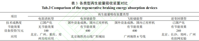 地鐵能量回收是一種大功率、高頻次的應(yīng)用場景,目前應(yīng)用較為廣泛的是再生制動(dòng)能量吸收利用。當(dāng)制動(dòng)能量不能被本車吸收時(shí),牽引網(wǎng)電壓上升,上升到一定程度后,牽引變電所中再生制動(dòng)能量吸收裝置投入工作,吸收再生電流,使車輛再生電流穩(wěn)定,如圖 3 所示。目前,再生能量吸收裝置可分為電阻消耗型、電容儲(chǔ)能型、飛輪儲(chǔ)能型、逆變回饋型,各類型裝置對(duì)比如表 3 所示。目前電容儲(chǔ)能型和飛輪儲(chǔ)能型較為常用。