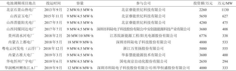 表2 國內(nèi)部分火電機(jī)組聯(lián)合儲能系統(tǒng)項目