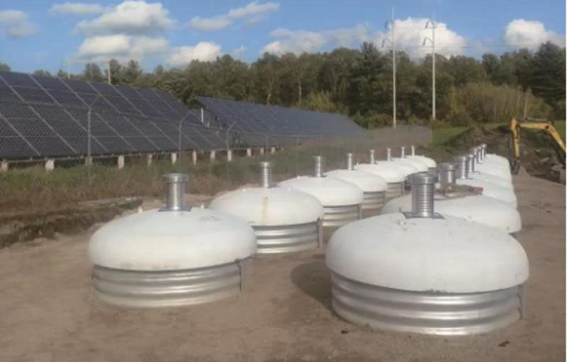 飛輪儲能同樣適用于光伏電站:2018年4月Amber Kinetics在馬薩諸塞州完成了128 kW/512 kW·h的項目,與West Boylston MLP原有的370 kW光伏系統(tǒng)在交流側(cè)連接,同年6月又在西藏運(yùn)高60 MW光伏電站中安裝了兩套8 kW/32 kW·h的飛輪,其安裝流程為鋪設(shè)設(shè)備基礎(chǔ)、放置飛輪鋼桶、吊裝飛輪、連接電纜和控制線、飛輪系統(tǒng)并網(wǎng)。值得一提的是,不同于其他公司的功率型飛輪,Amber Kinetics公司的飛輪放電時長高達(dá)4 h,與能量型電池的放電時長相當(dāng)。