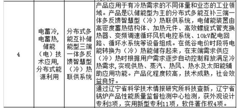 分布式多能互補(bǔ)儲(chǔ)能型三端一體多反饋智慧型(冷)熱聯(lián)供系統(tǒng):產(chǎn)品應(yīng)用于有冷熱需求的不同體量和業(yè)態(tài)的工業(yè)領(lǐng)域。產(chǎn)品是以儲(chǔ)能型為主的分布式多能互補(bǔ)三端一體多反饋智慧型(冷)熱聯(lián)供系統(tǒng),電儲(chǔ)能裝置由高密度蓄熱結(jié)構(gòu)體、加熱元件、高效螺旋式管殼換熱器、變頻調(diào)速循環(huán)風(fēng)機(jī)電控系統(tǒng)、10kV配電回路、循環(huán)水系統(tǒng)等設(shè)備組成。在低谷電價(jià)時(shí)段將電能轉(zhuǎn)換為(冷)熱能儲(chǔ)存起來,在末端需求供應(yīng)(冷)熱時(shí)根據(jù)用戶需求逐步自動(dòng)控制釋放滿足冷熱需求,實(shí)現(xiàn)供熱、蒸汽、熱風(fēng)、熱水及太陽能輔助應(yīng)用功能。產(chǎn)品化程度較高,技術(shù)成熟,社會(huì)效益良好。