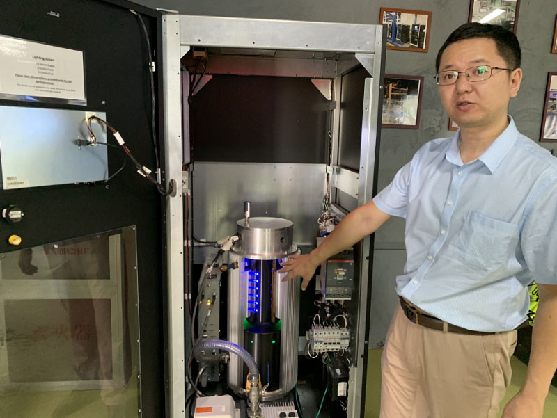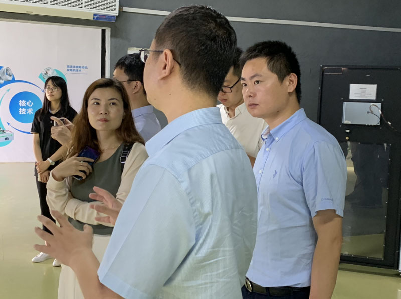 微控新能源副總裁陳燁向調(diào)研團(tuán)介紹磁懸浮飛輪技術(shù)
