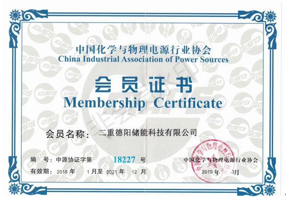 中國儲能網訊:經中國化學與物理電源行業(yè)協(xié)會儲能應用分會秘書處審核批準,二重德陽儲能科技有限公司正式成為我會會員單位,會員證書編號:18227,有效期至2021年12月。