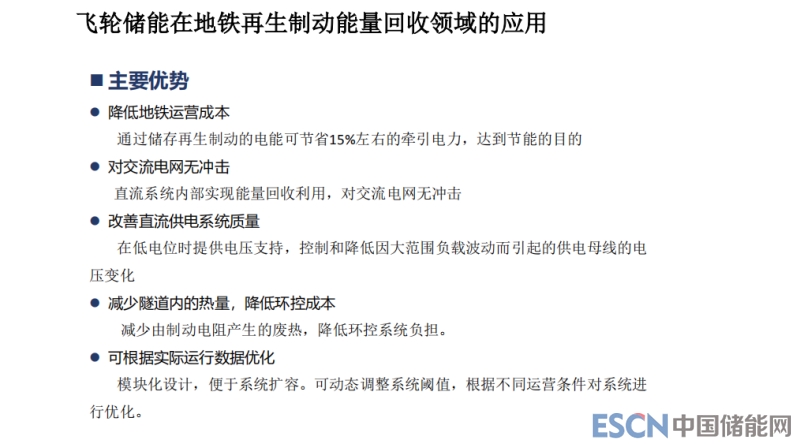 在地鐵里,飛輪儲能更好的應(yīng)用在地鐵里面,回收地鐵的制動能量,進(jìn)站時候能量等出站的時候快速的釋放出來,特別適合飛輪儲能的應(yīng)用場景。地鐵的車可能也就停一兩分鐘,飛輪特別不好的地方必須快充快放,如果閑置時間長了能量很快漏掉了,但是在地鐵這個場景反而是它最能夠發(fā)揮優(yōu)勢的地方,而且正好符合它的長壽命。高鐵里面也有這個優(yōu)勢,高鐵三四百公里的速度停下來,這個能量比地鐵大多了,我覺得未來高鐵可能也要用到。