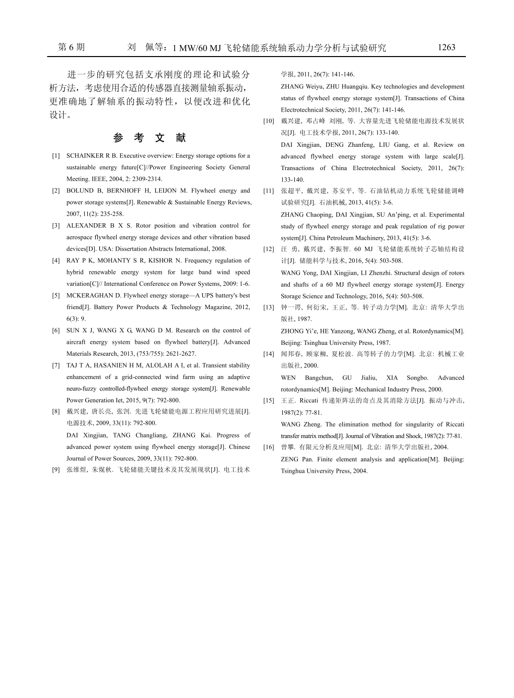中國儲能網(wǎng)訊:飛輪儲能技術(shù)是通過電動/發(fā)電機(jī)將飛輪機(jī)械能與電能相互轉(zhuǎn)化的技術(shù),具有充電時間短、響應(yīng)速度快、能量密度較高、使用壽命長、環(huán)保無污染等優(yōu)點(diǎn)。隨著高強(qiáng)度復(fù)合材料、大功率電動/發(fā)電機(jī)、磁懸浮、真空和電力電子等技術(shù)的發(fā)展,飛輪儲能技術(shù)目前已經(jīng)在電網(wǎng)調(diào)頻、電能質(zhì)量控制、衛(wèi)星儲能/姿控、車輛制動能量回收、不間斷電源和高功率脈沖電源等領(lǐng)域獲得了廣泛的應(yīng)用。近年來我國在飛輪儲能關(guān)鍵技術(shù)方面有所突破,部分大學(xué)和科研機(jī)構(gòu)已經(jīng)完成飛輪儲能系統(tǒng)試驗(yàn)裝置或工程樣機(jī)的研制。對此,劉佩、魏鯤鵬、戴興建進(jìn)行了1MW/60MJ飛輪儲能系統(tǒng)軸系動力學(xué)分析與試驗(yàn)研究,下面為文章全文。