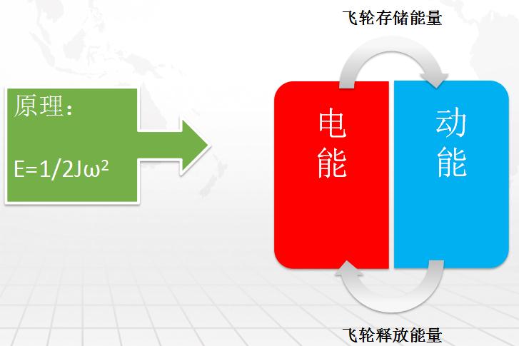 工作原理:利用電動發(fā)電機來實現(xiàn)電能和動能之間的互相轉(zhuǎn)換,從而實現(xiàn)充、放電。充電時,電動機模式,使飛輪轉(zhuǎn)子加速旋轉(zhuǎn),將電能轉(zhuǎn)化為飛輪動能,實現(xiàn)儲能。放電時,發(fā)電機模式,使飛輪轉(zhuǎn)子減速旋轉(zhuǎn),飛輪動能轉(zhuǎn)化為電能,實現(xiàn)能量輸出。