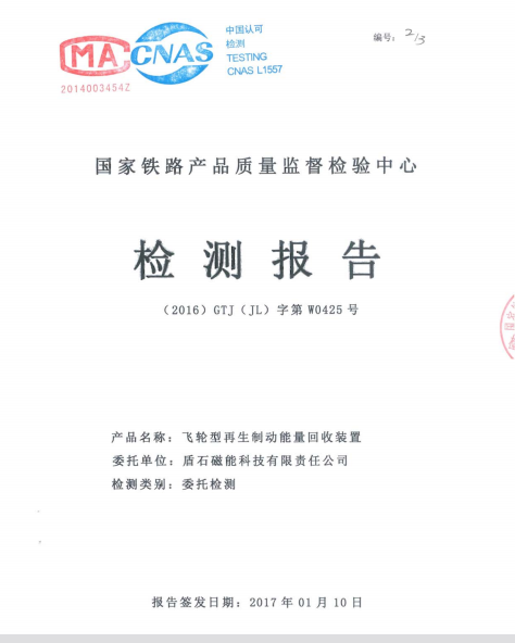 盾石磁能科技公司GTR飛輪型再生制動(dòng)能量回收裝置測(cè)試認(rèn)證的成功,證明該裝置技術(shù)成熟、性能優(yōu)越,運(yùn)行安全穩(wěn)定。同時(shí),也意味著GTR飛輪型再生制動(dòng)能量回收裝置符合行業(yè)準(zhǔn)入條件,在城軌列車(chē)再生制動(dòng)能量回收利用、抑制牽引網(wǎng)壓跌落、供電區(qū)間穩(wěn)壓等應(yīng)用中具有卓越的技術(shù)優(yōu)勢(shì),并將很快可以?huà)炀W(wǎng)應(yīng)用。