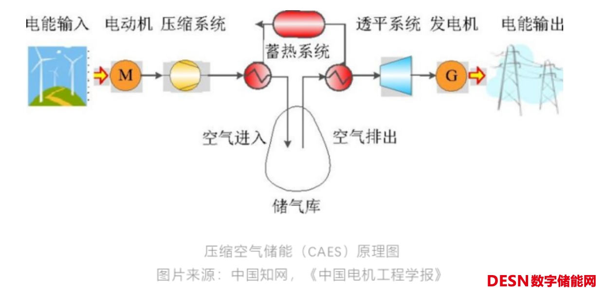 壓縮空氣儲(chǔ)能(CAES)在用電低谷,通過壓縮機(jī)把空氣壓縮成高壓空氣,在用電高峰,釋放高壓空氣,驅(qū)動(dòng)膨脹機(jī)就可以驅(qū)動(dòng)發(fā)電機(jī)發(fā)電。