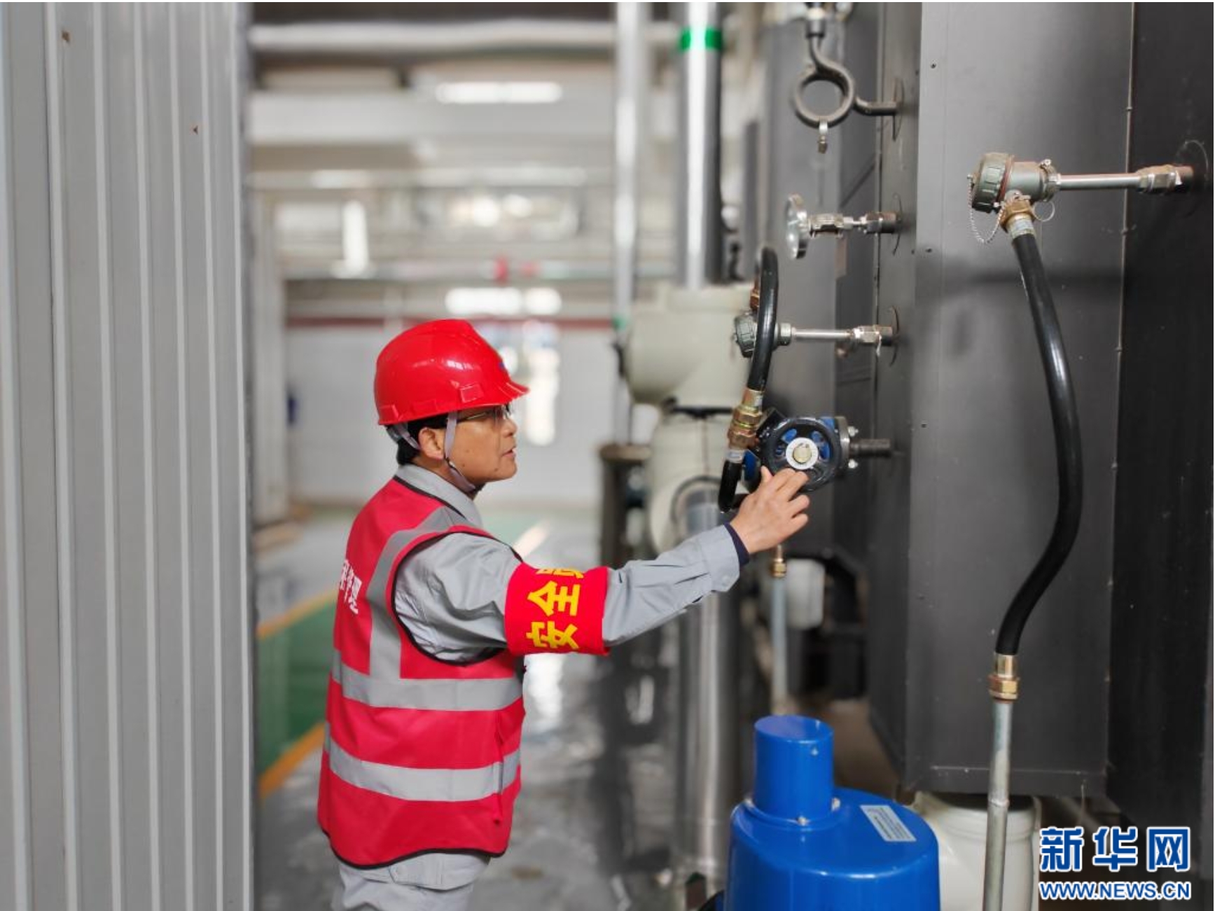 一位工人在已建成的智慧供熱項目車間檢查設備。新華社記者 浦超 攝